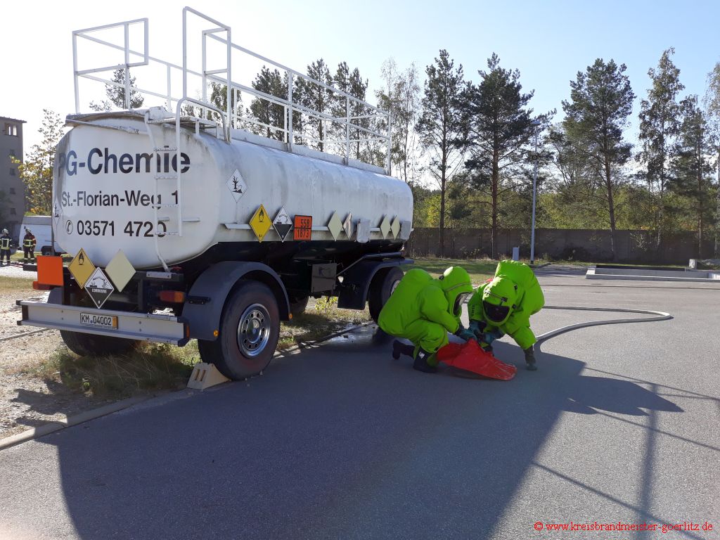 Am 30. März fand die Frühjahrsausbildung der Gefahrguteinheiten des Landkreises Görlitz in Weißwasser statt. Rund um die Eisarena wurden im Stationsbetrieb unterschiedliche Komponenten geübt. Die Gefahrgutzüge hatten die Aufgabe abzudichten, Flüssigkeiten umzupumpen und die Einsatzstelle zu erden.